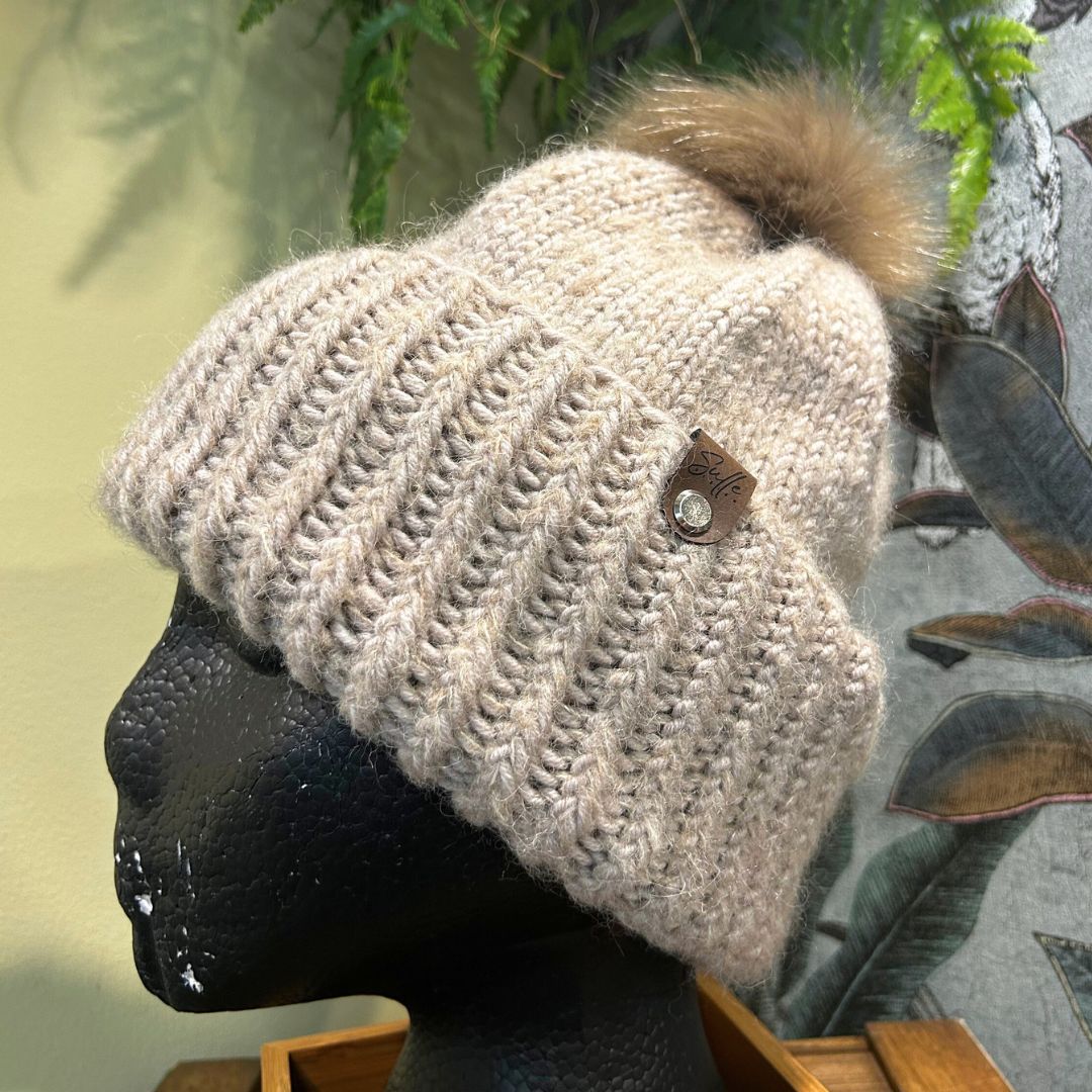 Käsinneulotut pipot, pannat, säärystimet ja villasukat.