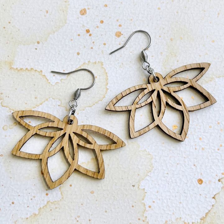 Lotus iso, käsittelemätön tammi. Korvakoru koukut ja muut osat kirurginteräs (rst 304).